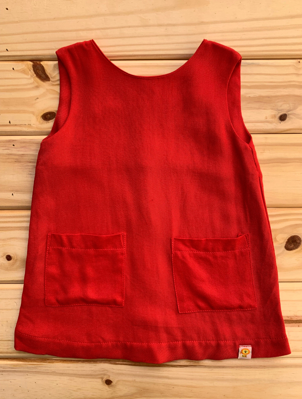 Vestido Amerelinha foi feita em tecido Viscose 100% algodão, com botões naturais de coco nas costas, e bolsinhos na frente.